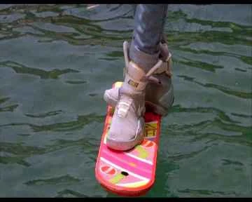 According to the Newsline column on the front page of the October 22, 2015 issue of USA Today1, a Border Collie music video star called Maddy, who could ride a hoverboard, had her own one hour television special on Canine Sports Network that evening. It was also announced in the column that in 2016, hoverboards would be "lighter and thinner", but they still wouldn't work on water.