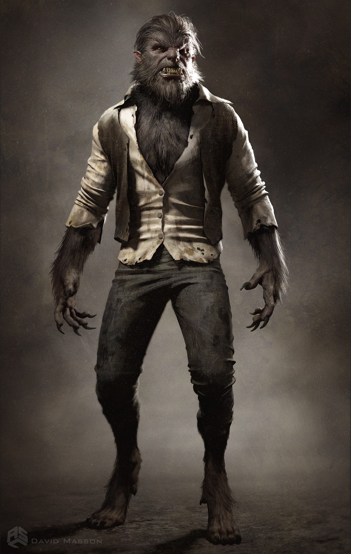 The Wolf-Man, as it's name states, is a werewolf, originally a human named Larry Tabolt, whom upon looking at the full moon, grew canid features, resembles more human (humanoid). It has a shorter, human nose-like snout and has fur all over it's body. It has sharp claws (or paws) and teeth. The Wolf-Man is known to be a brutal werewolf. In the 2010 remake, it retains it's appearance, albeit more hairy and grizzly. He wears a white shirt, a black waistcoat, pants, and whose clothes are generally very dirty and torn in small areas.